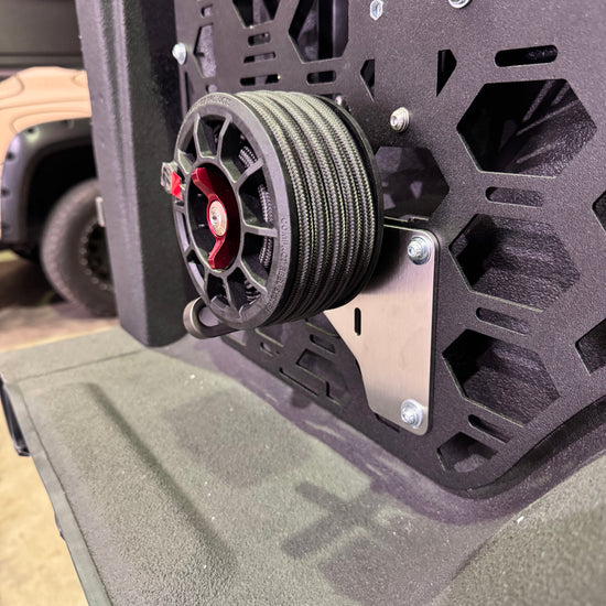 This bracket for the Compact Reel System is a great mount that allows you to mount the reel flat up against another surface in a vertical position (perfect for the Mate Designs Molle Panels)